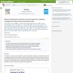 Dietary carbohydrate restriction in type 2 diabetes mellitus and metabolic syndrome: Time for a critical appraisal. Nutr Metab (Lond) 5: 9. Dietary carbohydrate restriction as the first approach in diabetes management: Critical review and evidence base. Nutrition 31: 1-13. ... Access Doc